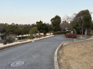 運転手控え室はクラブハウスをみて左の道を降りた右手にあります