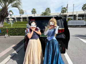 衣装が軽くウェディングドレスレベルなので、大きなアルファードでゆったり移動🚕とても喜んでいただきました